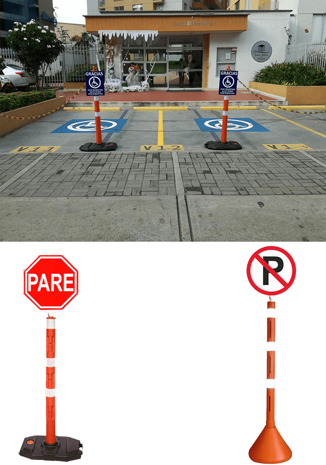 Ideales para delimitar áreas, compatibles con otras señales informativas como «prohibido parquear», «parqueadero de minusvalidos».